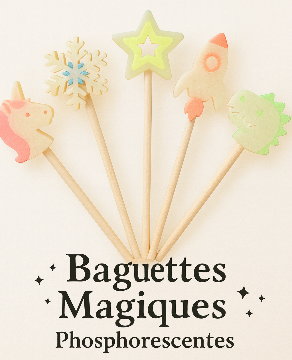 Ces baguettes magiques s’illuminent dans le noir et prolongent la féérie même après le coucher du soleil. Parfaites pour stimuler l’imagination, jouer, rêver et ajouter une touche de magie lumineuse à chaque instant.