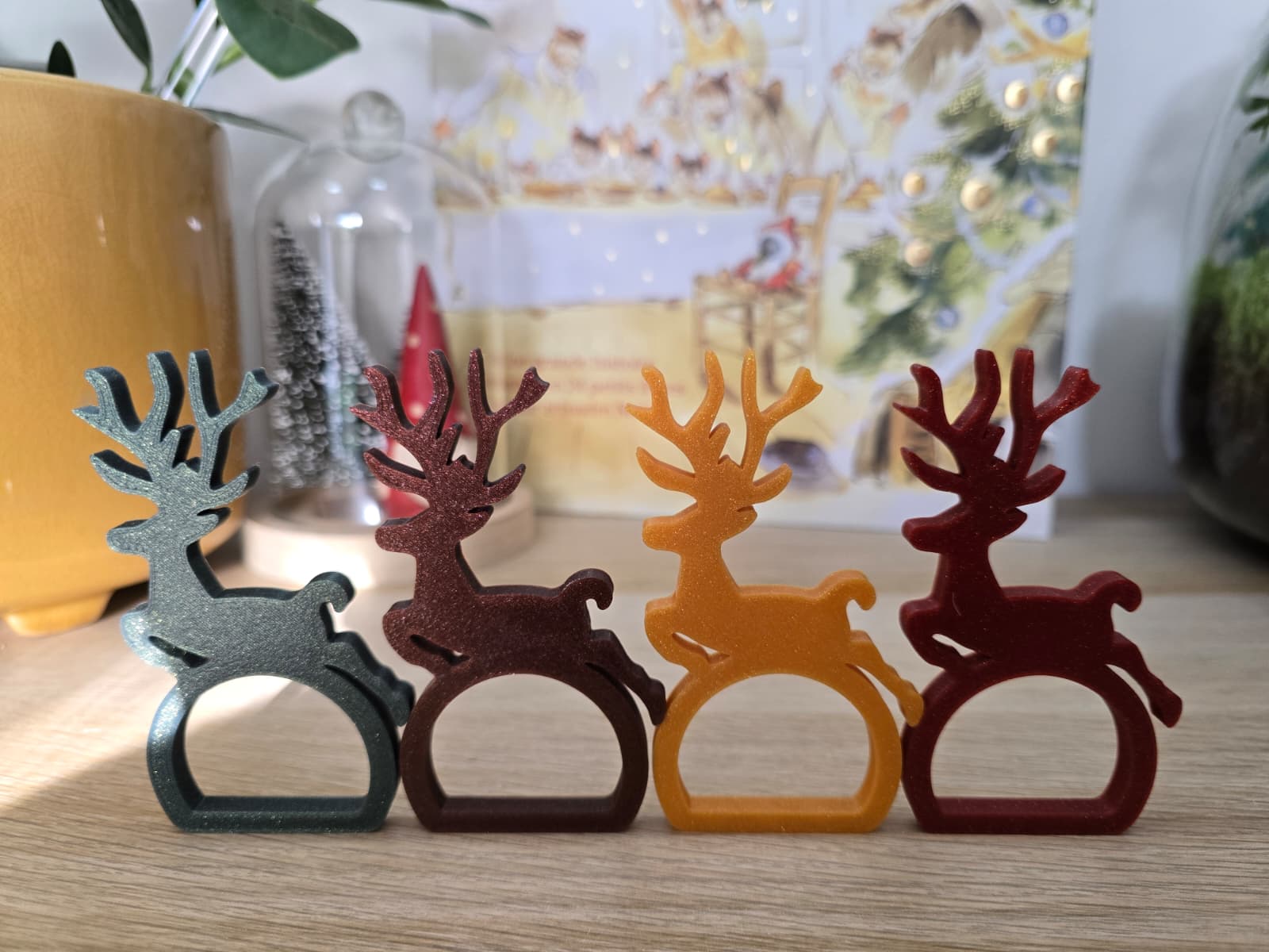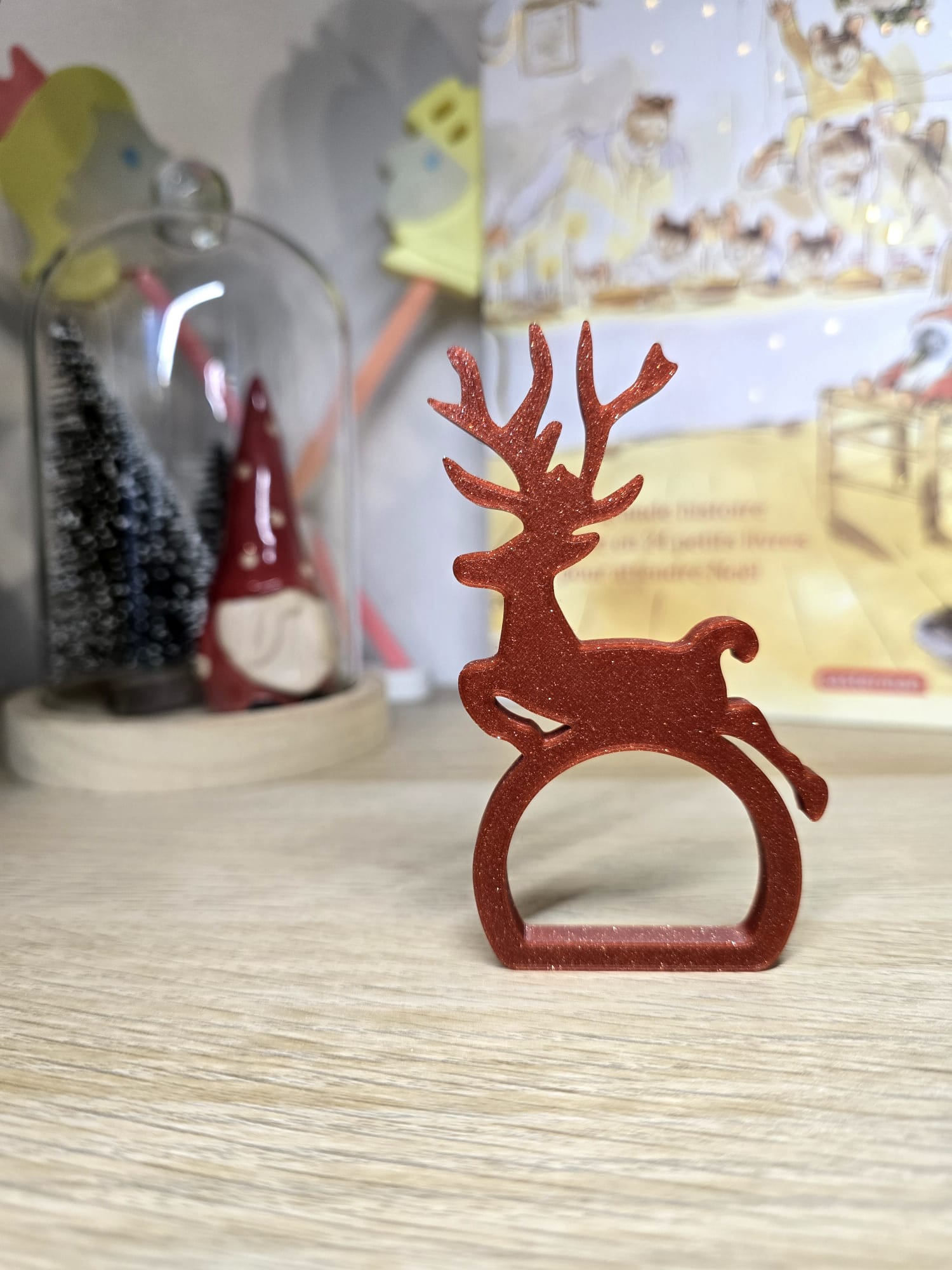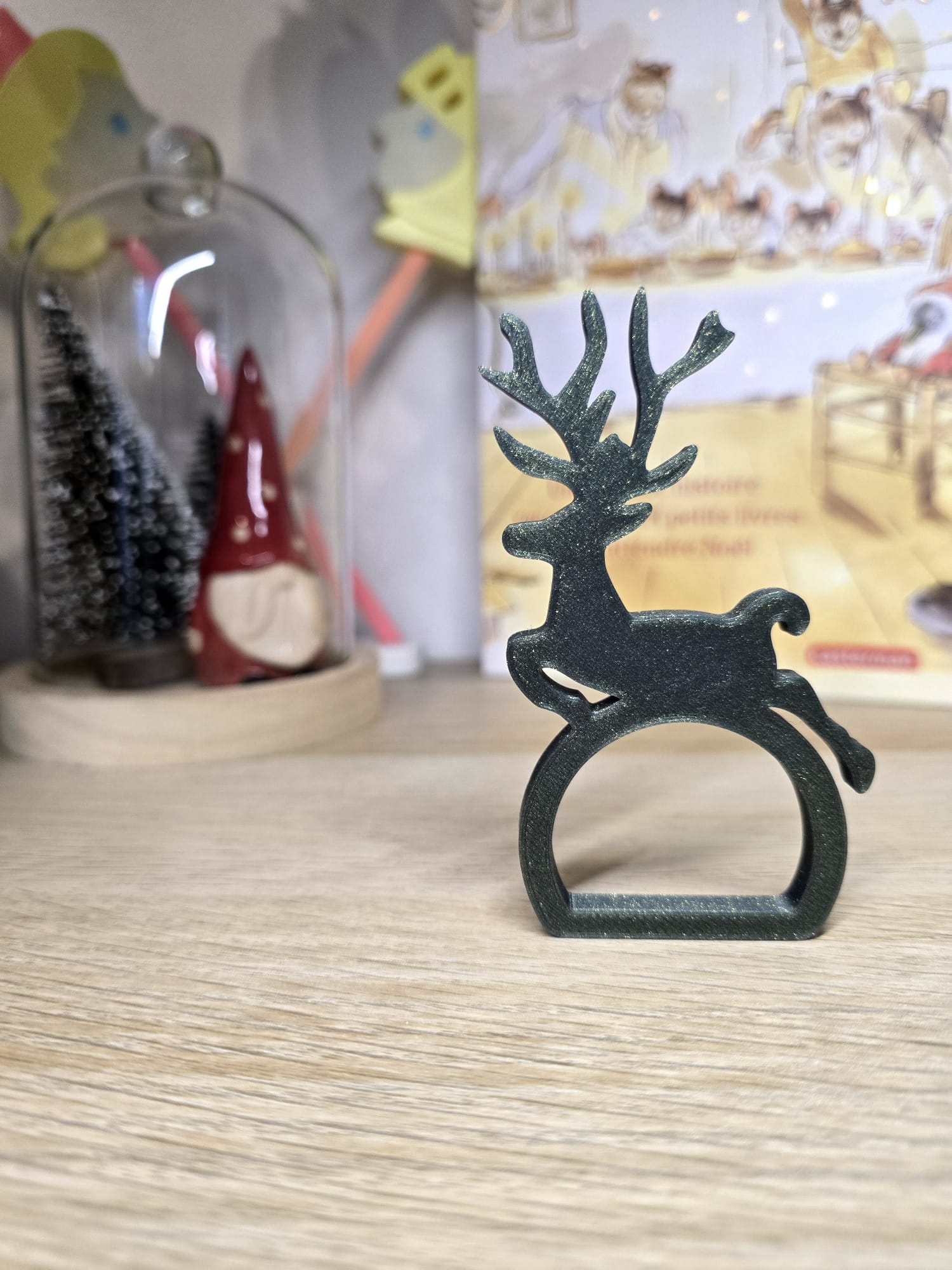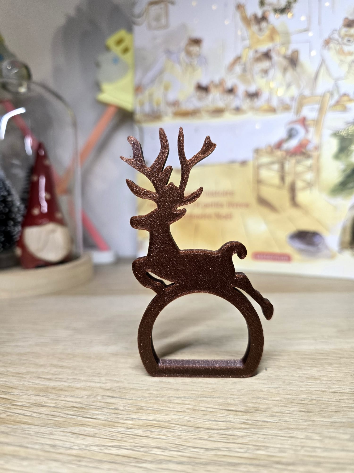 Porte-serviette en forme de renne, fabriqué en impression 3D, parfait pour apporter une touche festive et ludique à votre table.